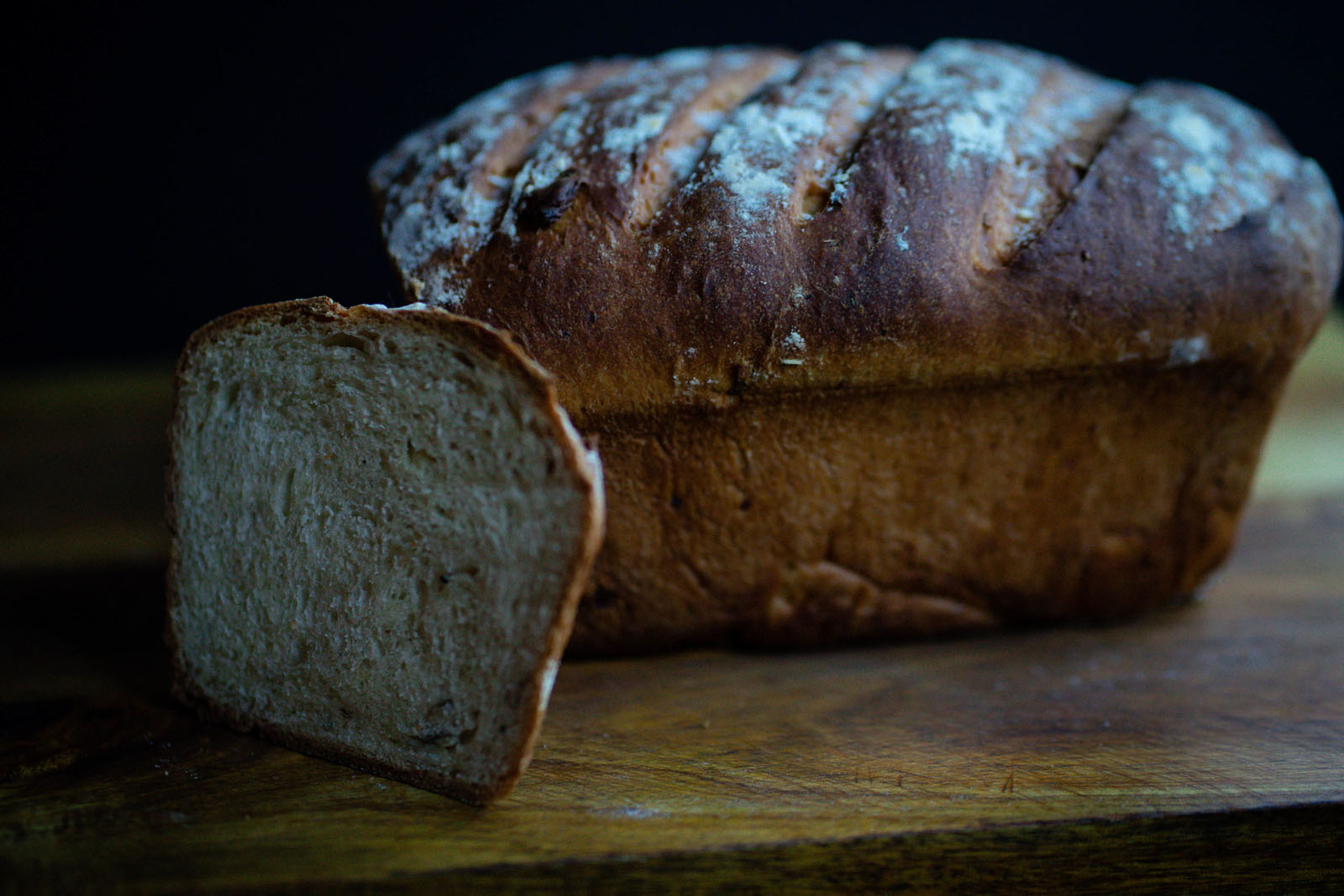After it's doubled in volume, shape your loaf on a floured surface. Make sure it is the same size as your loaf pan.
